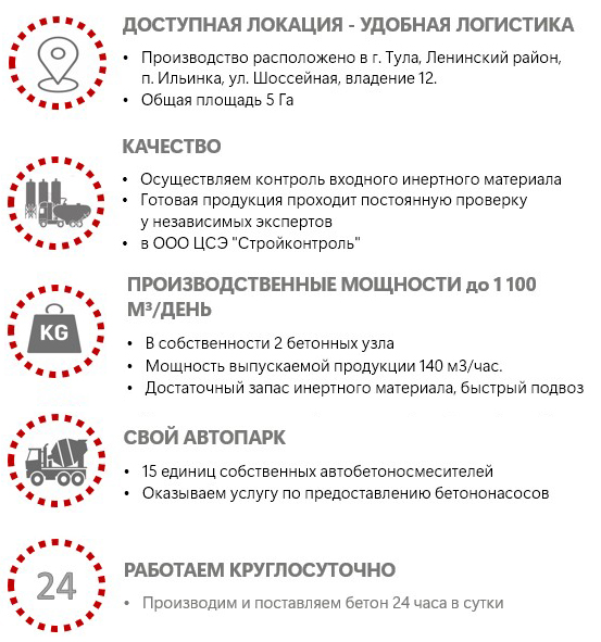 Если Вы желаете купить товарный бетон высокого качества и по приемлемой цене, обращайтесь к нашим менеджерам. Мы исчерпывающе проконсультируем Вас по всем вопросам и обеспечим доставку по Туле или Тульской области.
